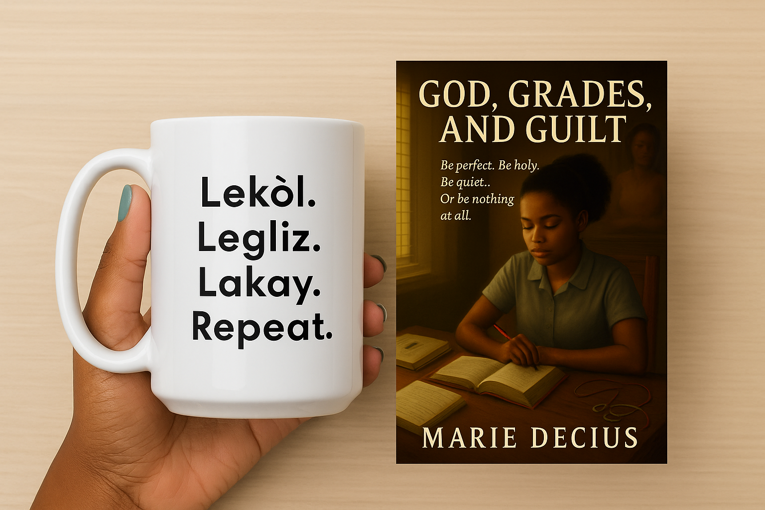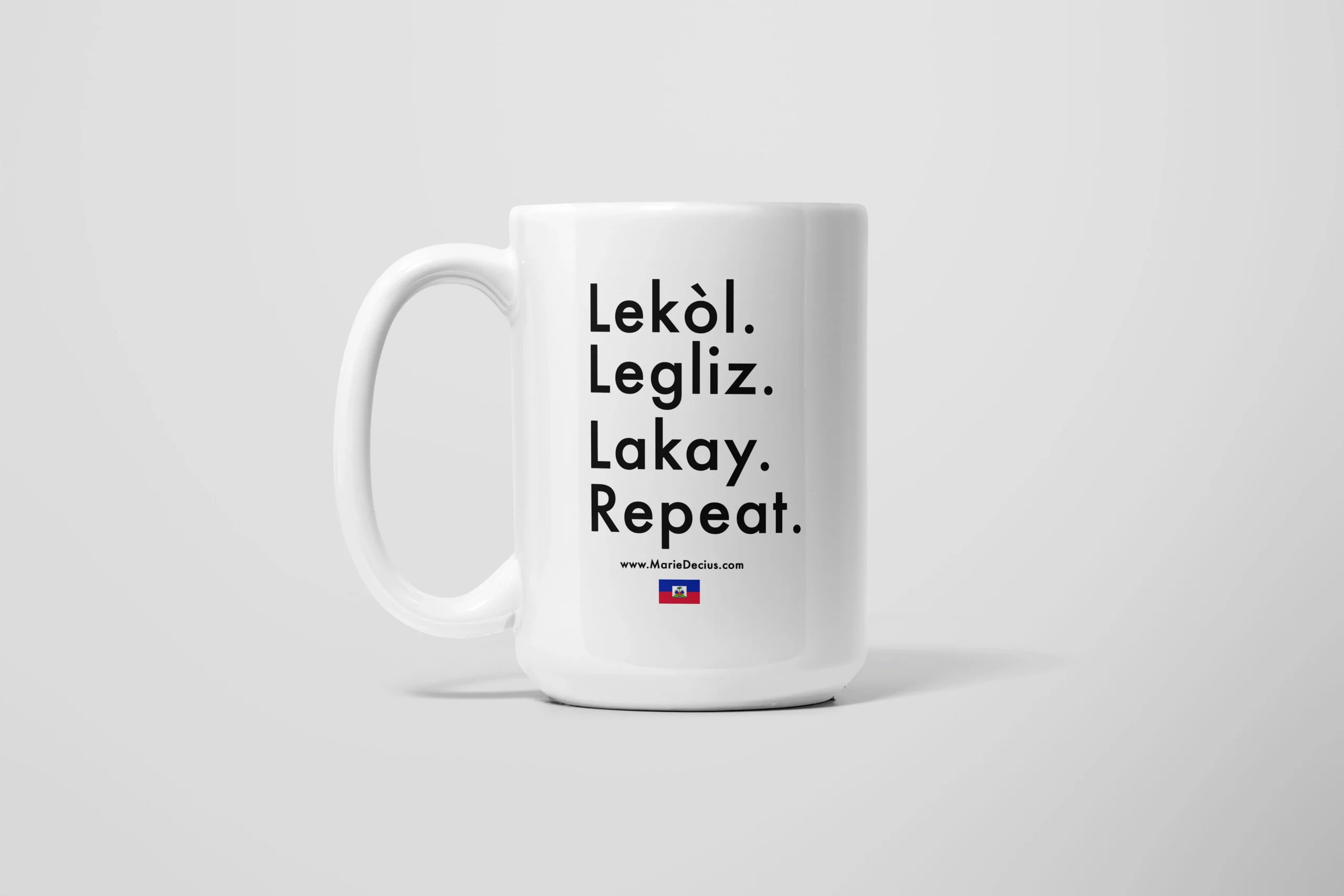 This 15 oz ceramic mug is a love letter to the rhythm of growing up Haitian — where Lekòl (School), Legliz (Church), and Lakay (Home) weren’t just places, but whole ecosystems that shaped our identity.